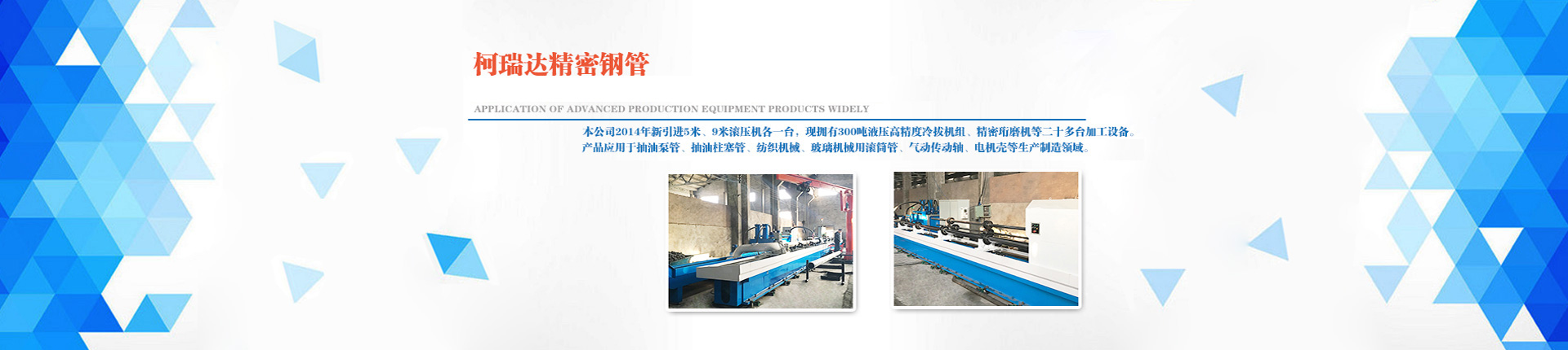 本公司2014年新引进5米、9米滚压机各一台,现拥有300吨液压高精度冷拔机组、精密珩磨机等二十多台加工设备,专业生产液压缸筒和气动缸筒用高精度冷拔管、珩磨滚压管、液压油缸筒,冷拔焊管。产品应用于抽油泵管、抽油柱塞管、纺织机械、玻璃机械用滚筒管、气动传动轴、电机壳等生产制造领域。